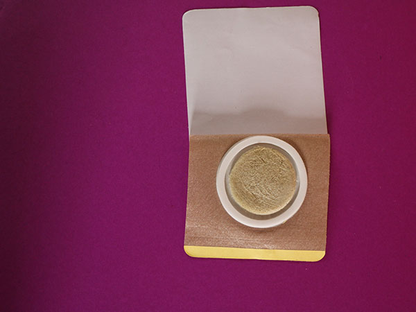 使用方法:使用時(shí)把無紡布和無紡布附著面的紙揭開,把作好的膏藥放到防滲圈的中央,然后把無紡布和無紡布附著面的紙合攏,使用時(shí)把紙去掉貼到患部即可。